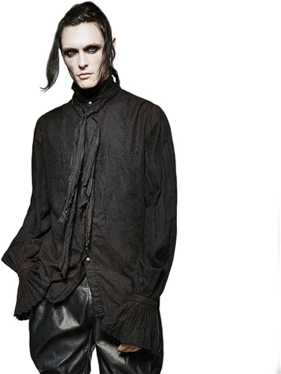 Punk Fashion Men Tie Shirt Vintage Do Old Washed Gothic Black