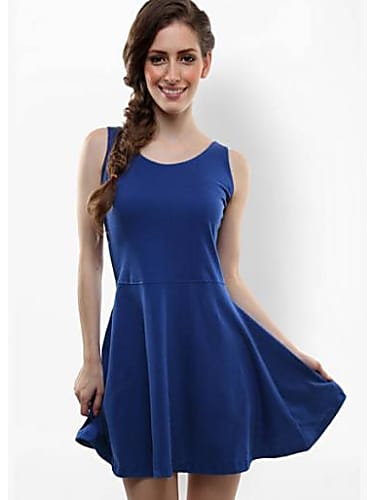 Genebei Saratorio Romwe Cut Out Neck Royal Blue Dress Shu Shoe