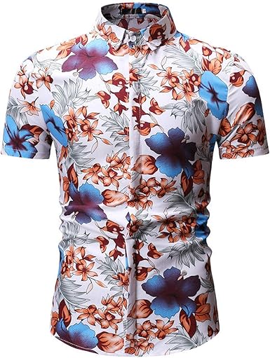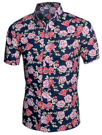 Uxcell Men Slim Fit Floral Print Short Sleeve Button Down Beach