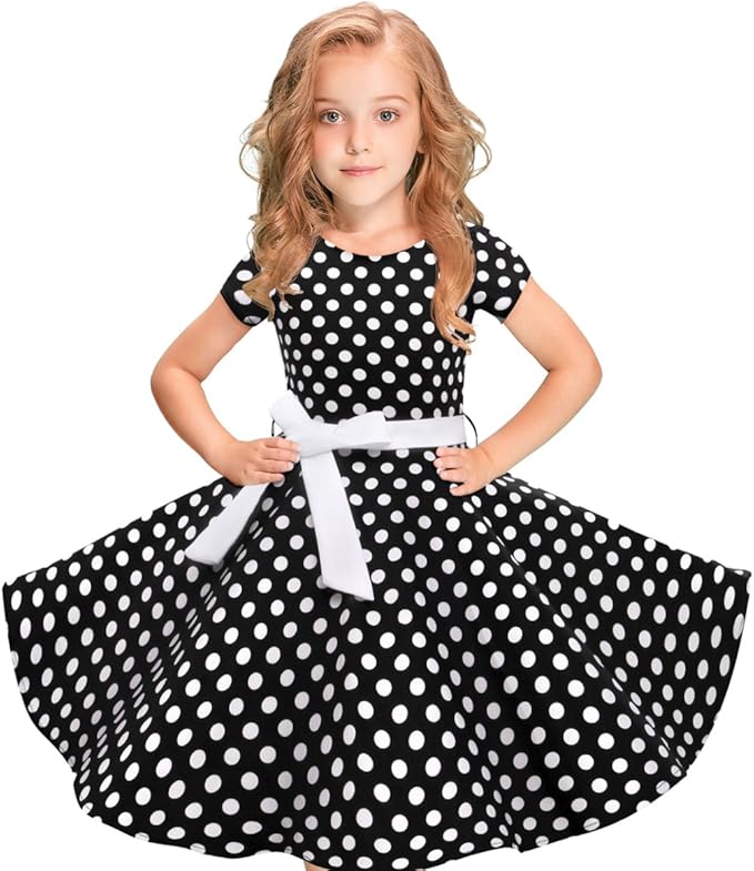 Amazon Com Vintage Polka Dot Swing Girls Dress 1950s Retro Style