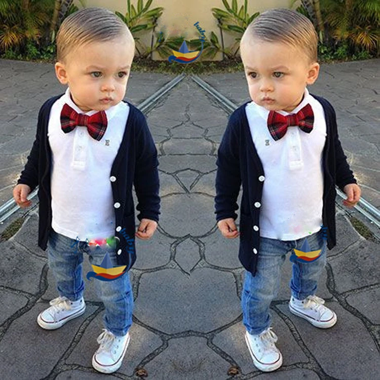 3pcs Baby Boys Gentleman Outfit Suit Coat T Shirt Denim Pants Kids