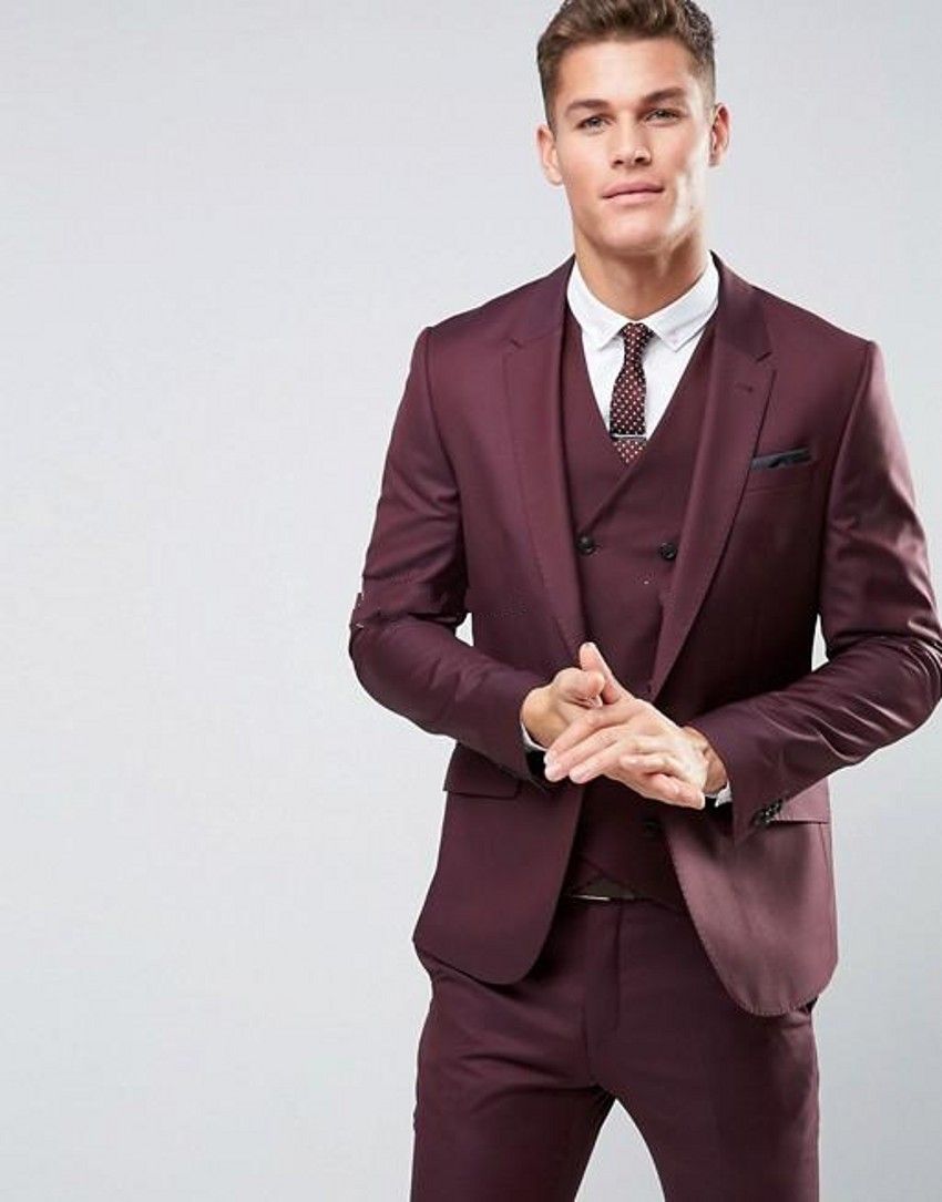 Classy Burgundy Wedding Mens Suits Slim Fit Bridegroom Tuxedos For