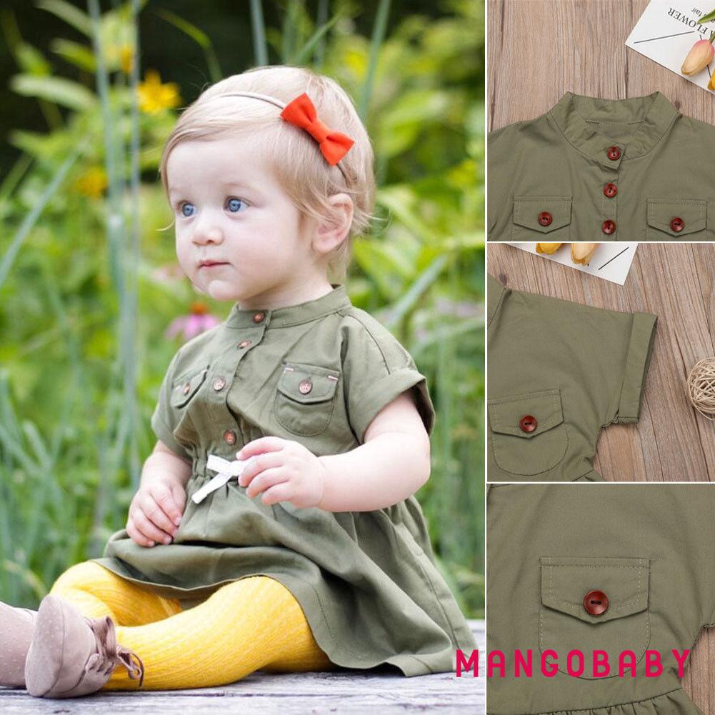 2019 New Novelty Baby Girls Army Green Dress Short Sleeved Dress