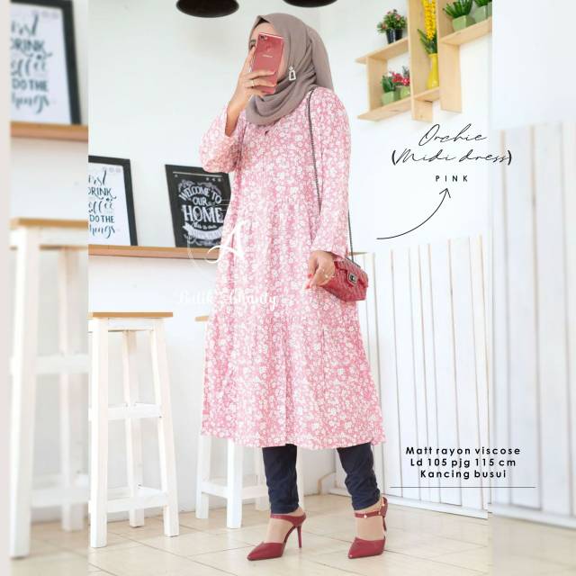 Tunik Midi Dress Kekinian Terbaru Elegan Simple Outfit Kuliah