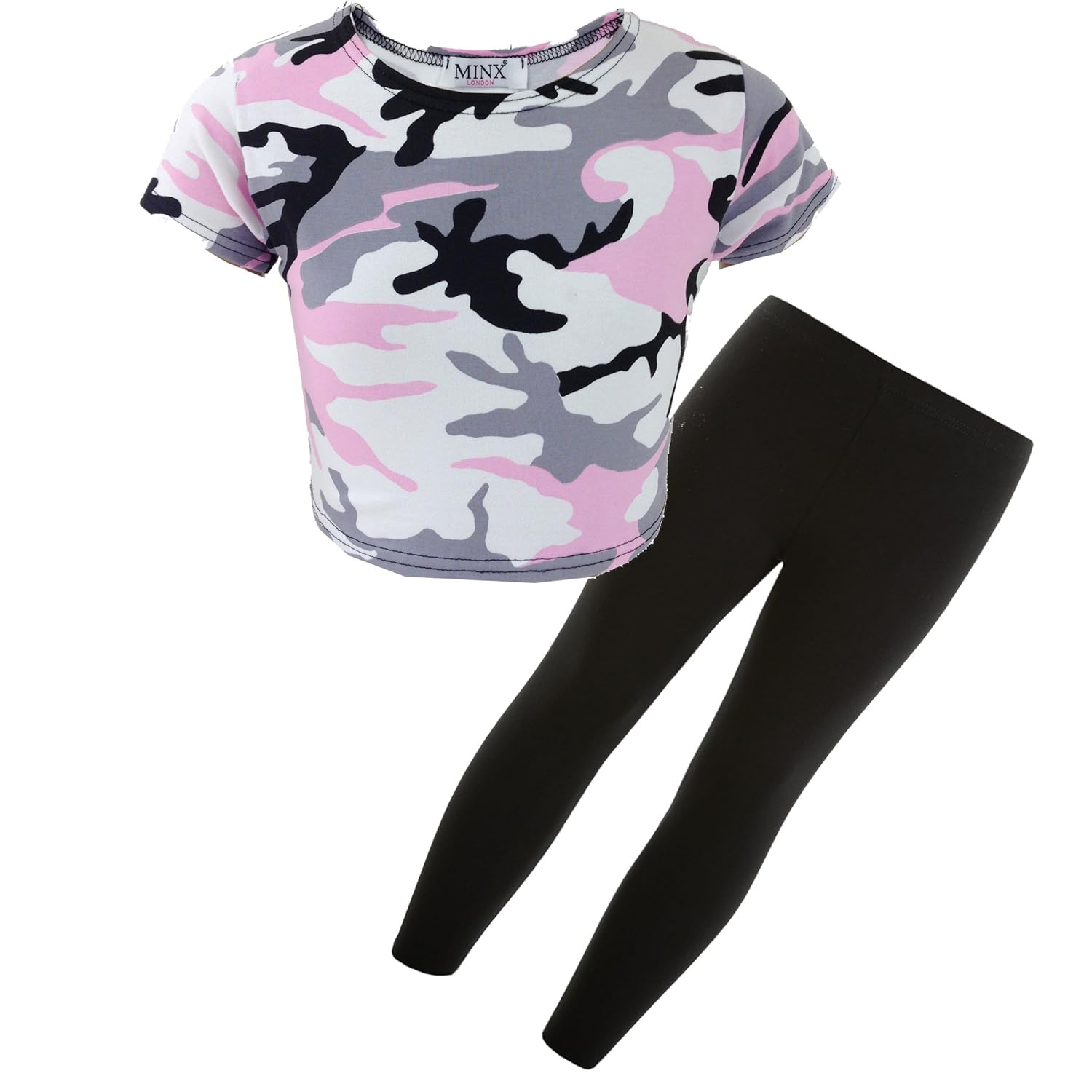 Girls Printed Crop Top T Shirt Black Cotton Leggings Kids Summer