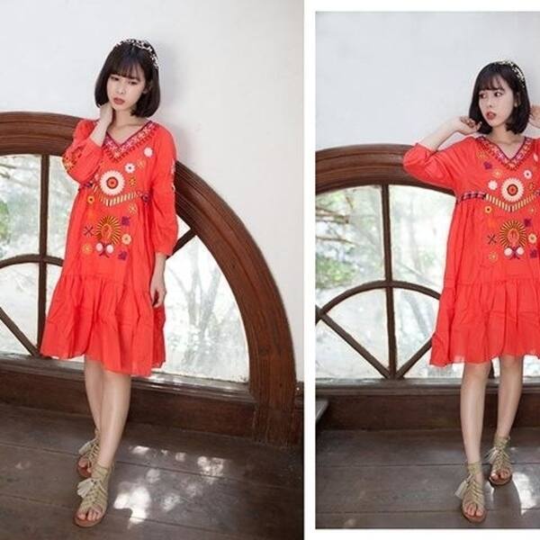 Tunic 70s Vintage Embroidery Mexican Dress Summer Fashion Mexican
