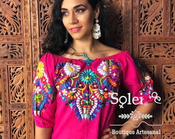 Mexican Oaxaca Embroidered Tunic Puebla Style Boho Hippy Fiesta