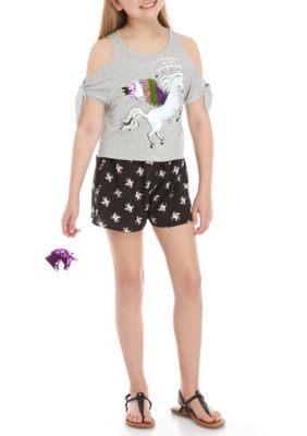 Belle Du Jour Girls 7 16 Heather Gray Unicorn Sequin Short Set Belk