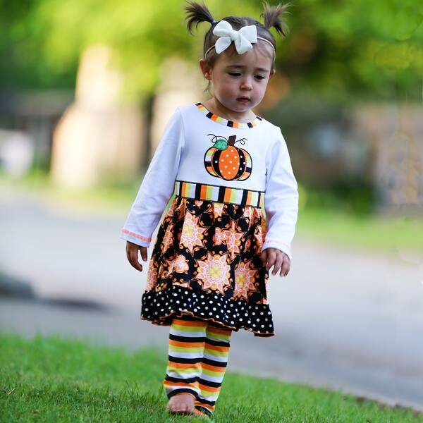 Shop Annloren Girls Orange Pumpkin Autumn Dress Striped Leggings
