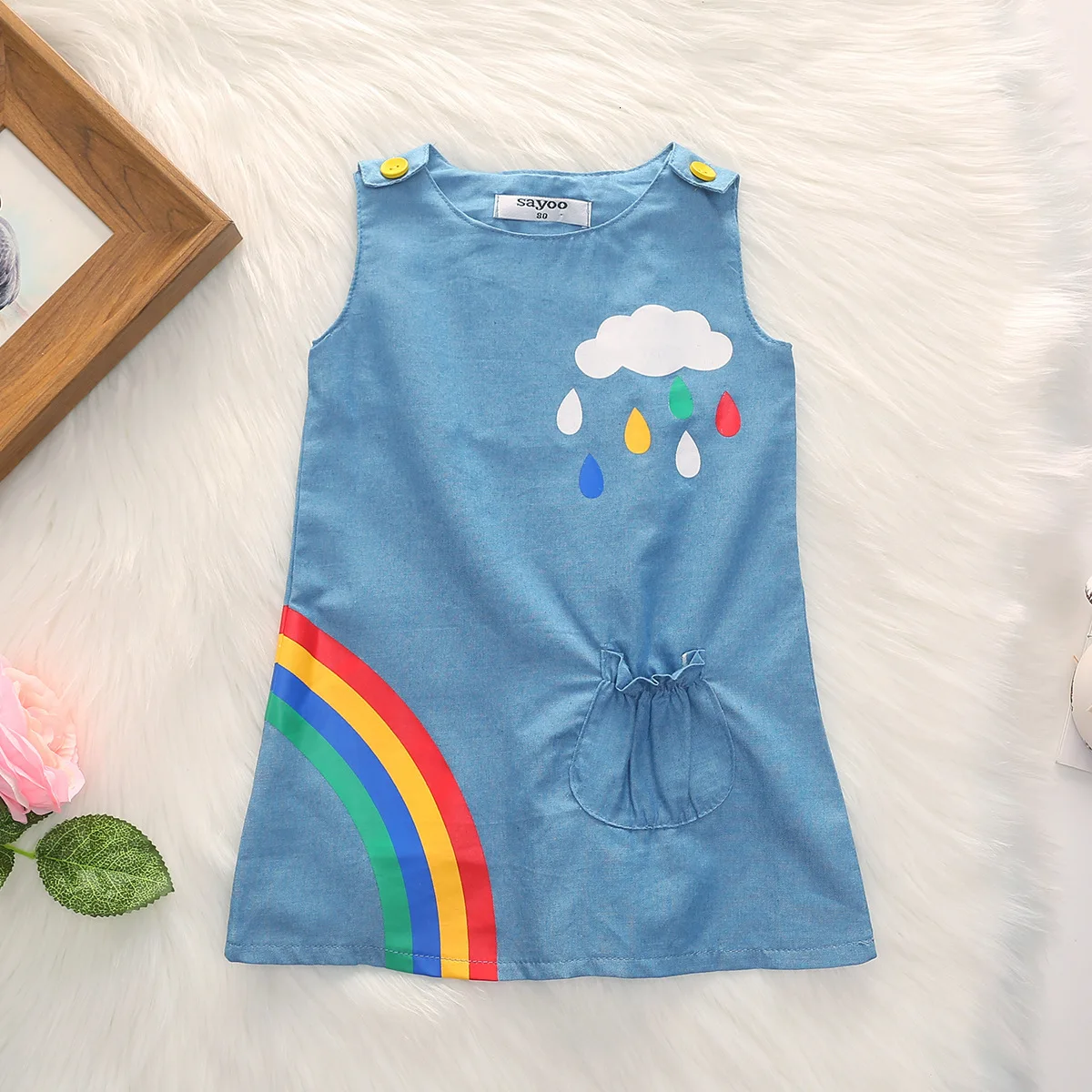 2019 2019 Girls Fashion Denim Dress For Girls Baby Clothes Rainbow