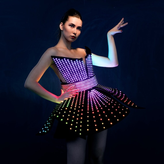 Rave Led Light Up Rainbow Dress Outfit Fashion Festival Etsy