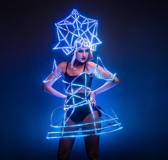 White Queen Led Light Up Rainbow Cage Dress Outfit Fashion Etsy