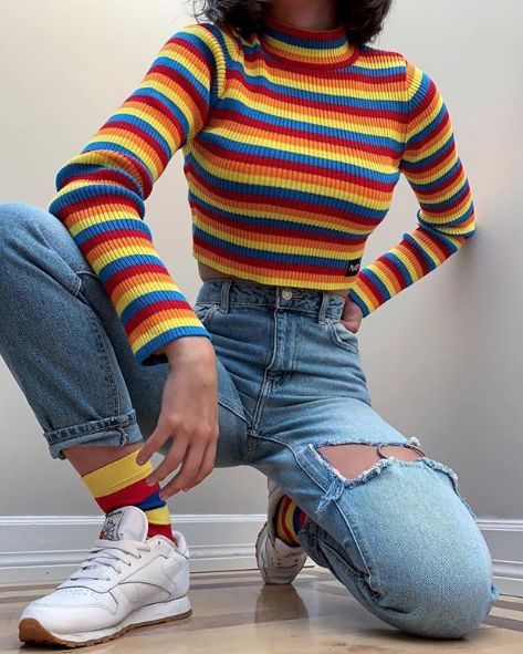 How To Wear The Rainbow Stripes Trend Rainbow Outfit Colourful