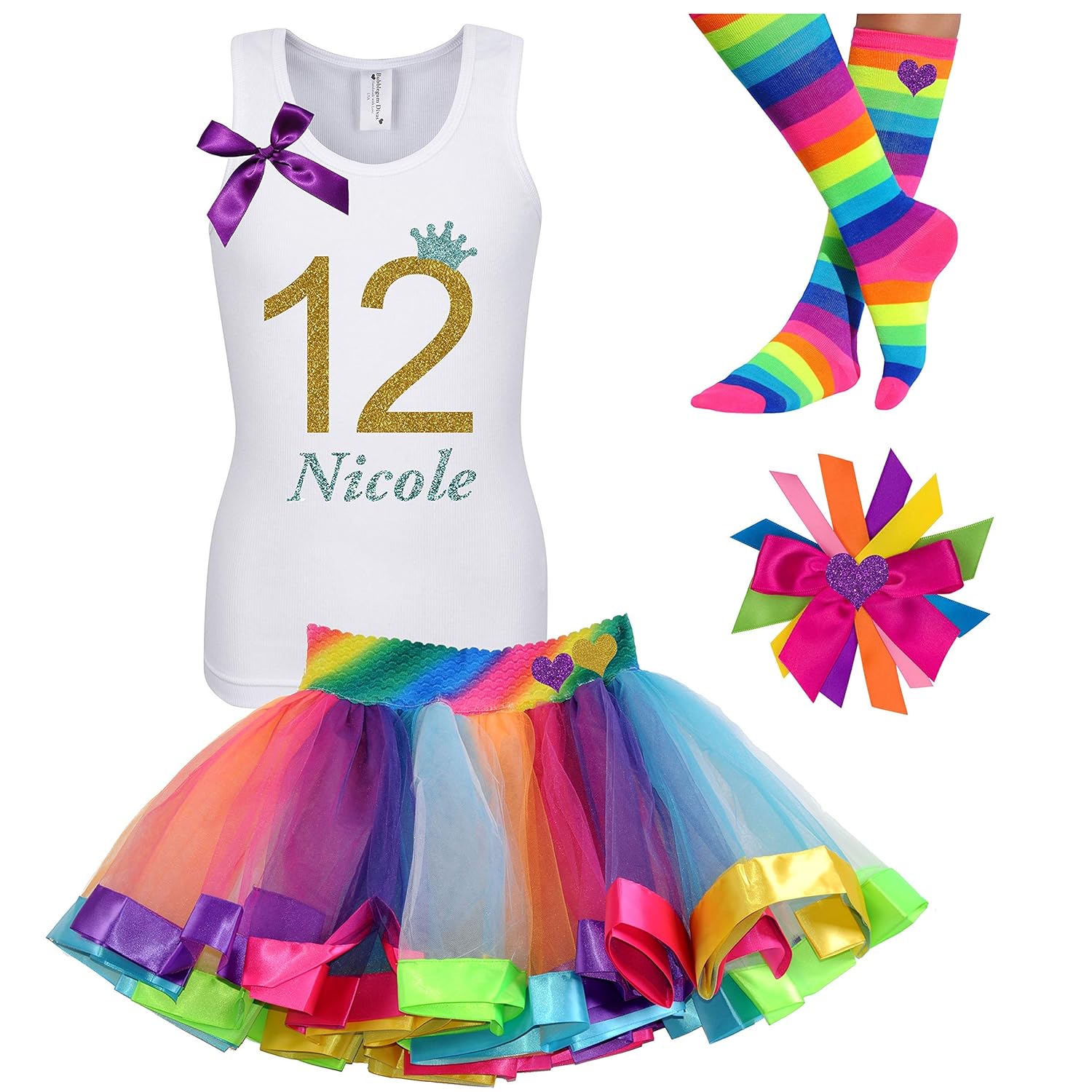 Amazon Com 12th Birthday Girls Shirt White Rainbow Party Tutu