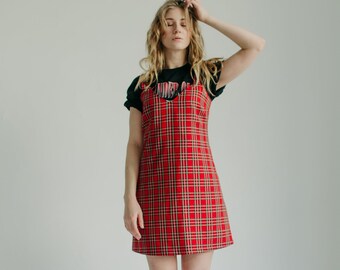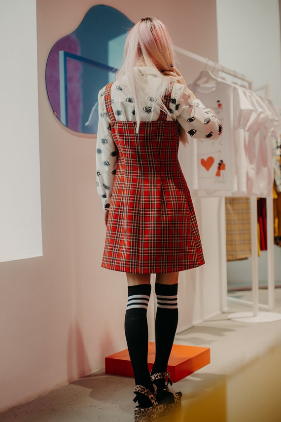 90 S Aesthetic Dress Scottish Plaid Red Checkered Dress Etsy