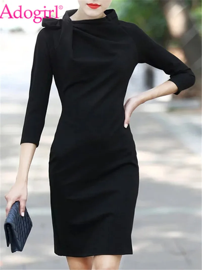 Adogirl Graceful Black Office Lady Pencil Mini Dress O Neck 3 4