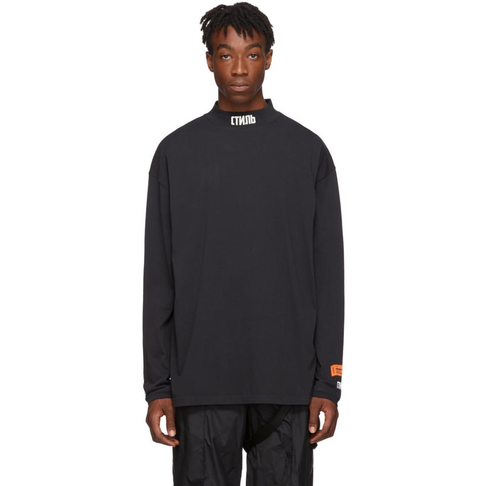 Heron Preston Cotton Black Turtleneck Style Long Sleeve T Shirt