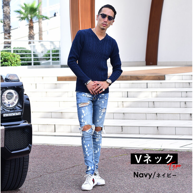Chao R Knit Men Sweater Rib Knit Plain Fabric Long Sleeves Long