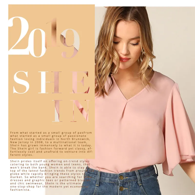 Shein Pink Pleated Front Flutter Sleeve Top Flounce Sleeve Blouse