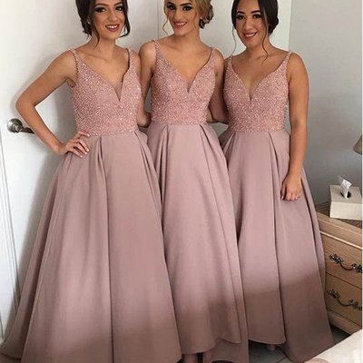 2020 Deep V Neck Evening Dresses Crystal Dusty Pink Formal Prom