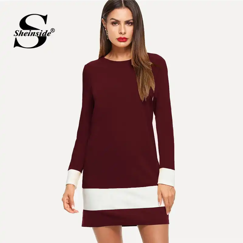 Sheinside Color Block Tunic Autumn Dress Women Clothes 2018 Office