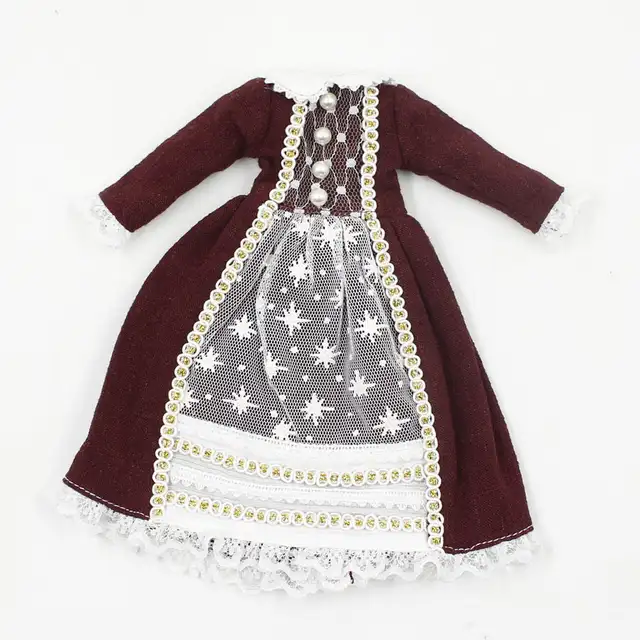 Blyth Doll Lace Burgundy Dress With Hair Band For The Joint Body