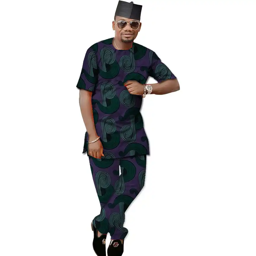 African Fashion Outfits Men Ankara Print Shirt Pant 2 Pieces Sets