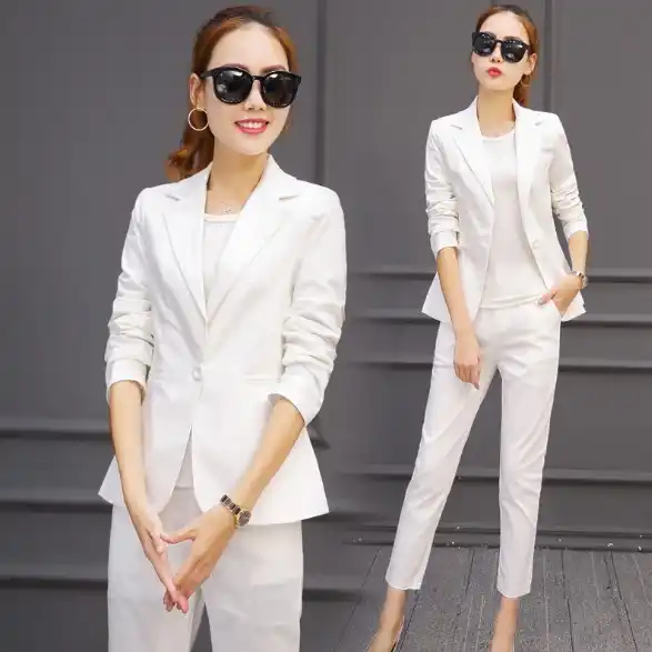 Women Black White Orange Work Wear Pants Suits Formal Blazer And