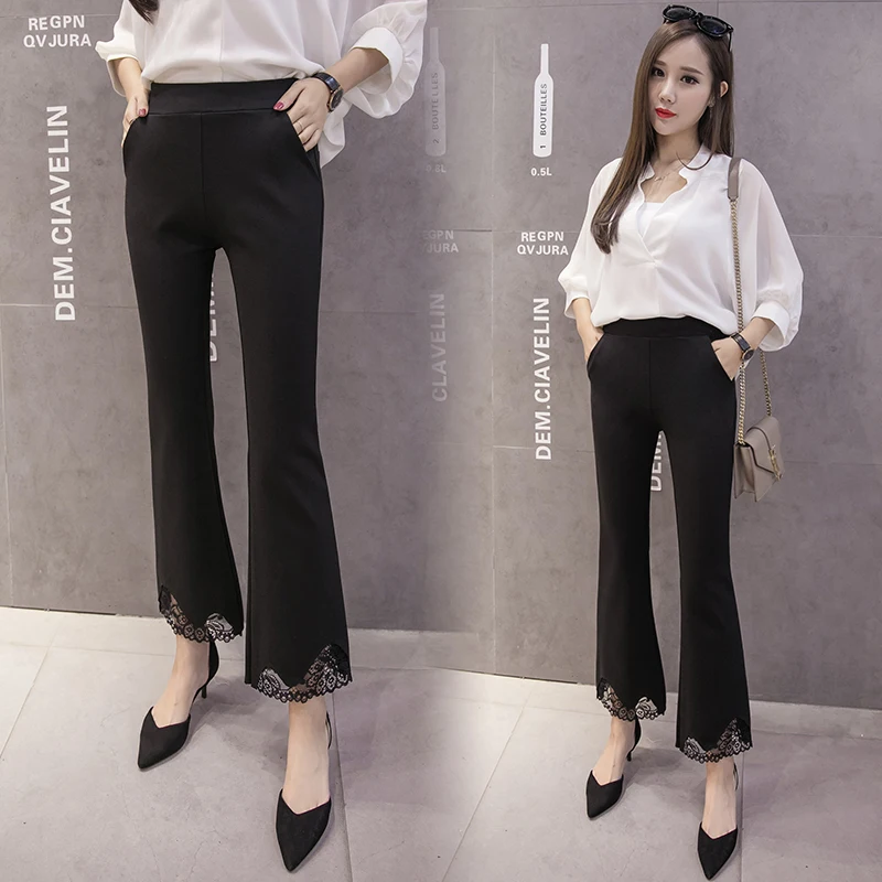 2019 New Women Work Black Slim High Waist Flare Vintage Career Ol