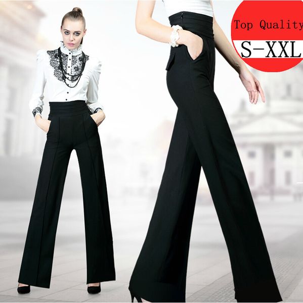 Enlishop Women Fashion Work High Waisted Black Wide Leg Palazzo