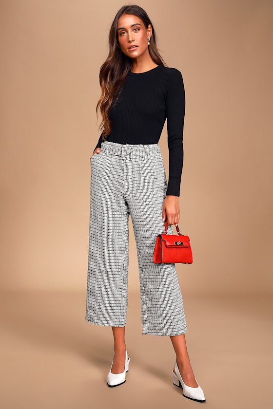Chic Black And White Pants Tweed Pants Cropped Wide Leg Pants