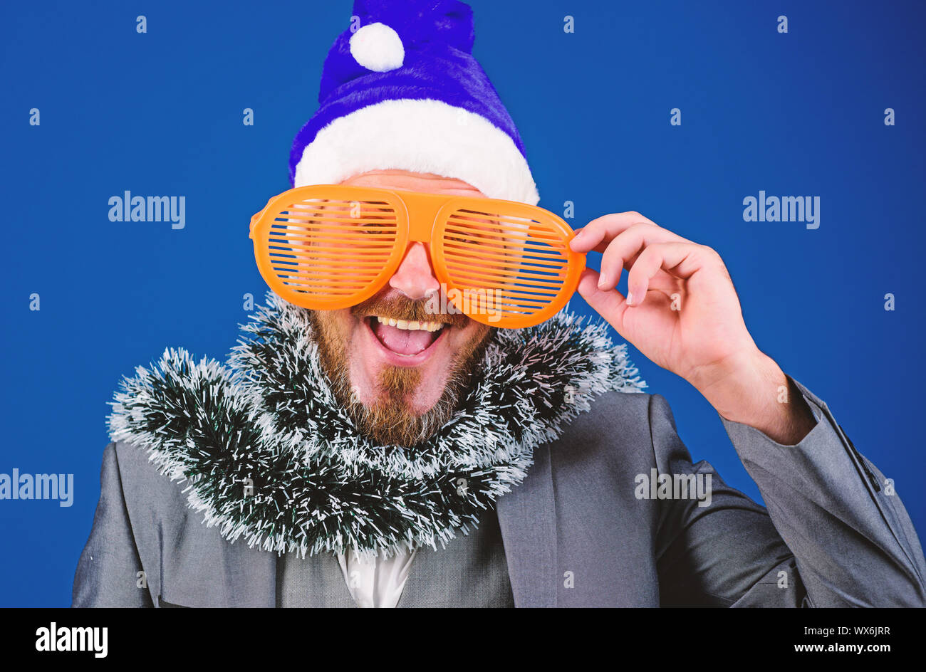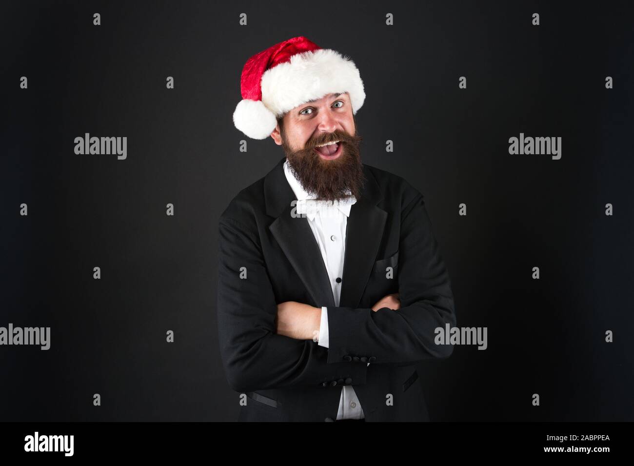 Man Bearded Hipster Wear Santa Hat Christmas Spirit Concept