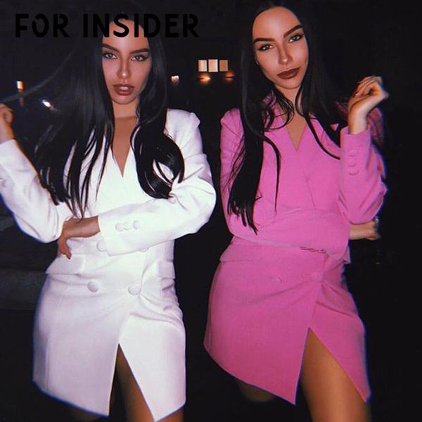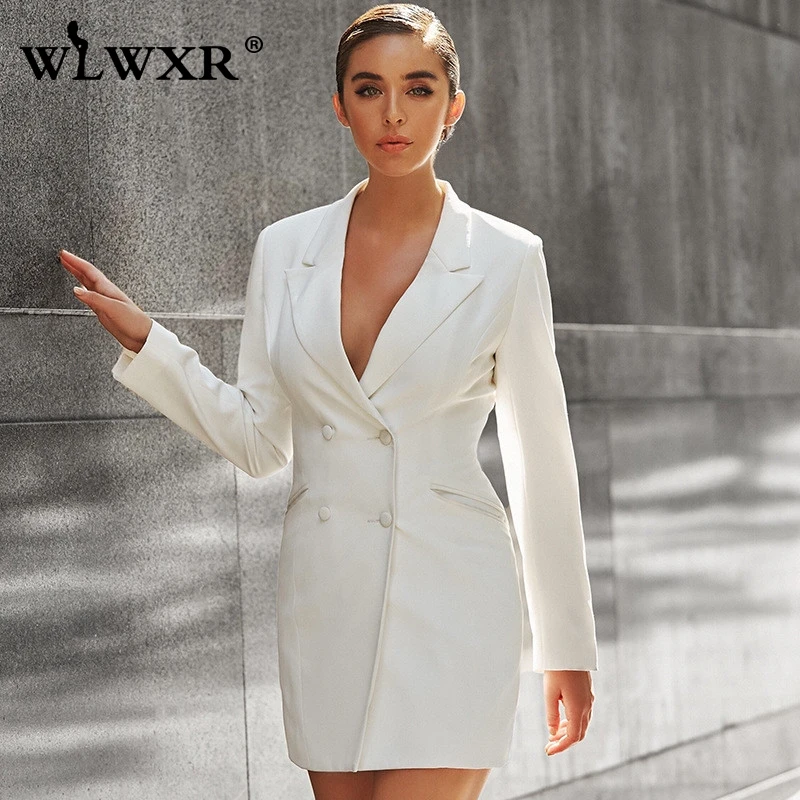 Wlwxr Autumn Sexy Bodycon Blazer Dress Women Notched Double