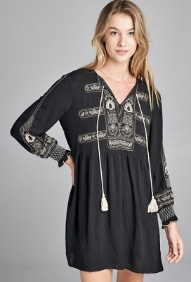 Women Embroidered Smock Dress Black Bohemian Dresses M 3716238