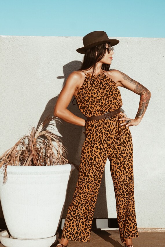Leopard Boho Chic Bohemian Romper Halter Neck Festival Outfit Etsy