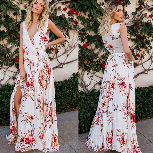 2019 2019 Women Summer Long Dress Bohemian Print Sexy