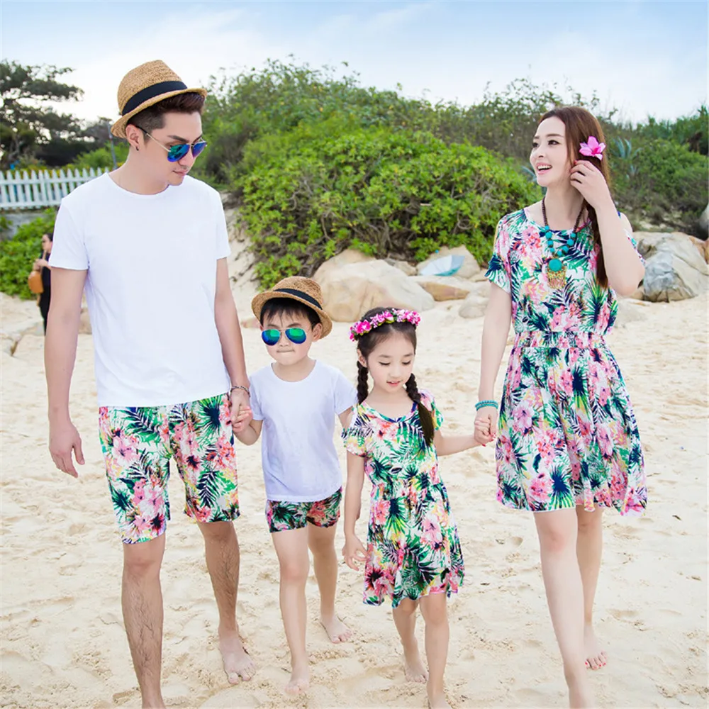 2018 Bohemian Style Mother Daughter Beach Dresses Dad Boy T Shirts