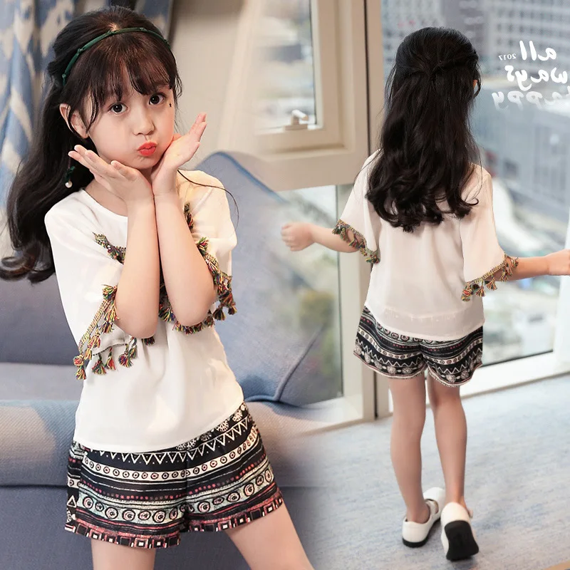 Big Girls Clothing Sets Sleeveless Bohemian T Shirts For Girls