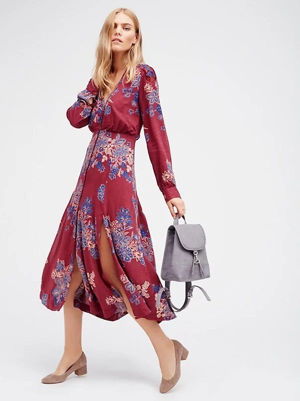 Long Sleeve Floral Print Maxi Dress Bohemian Style Rebelsmarket