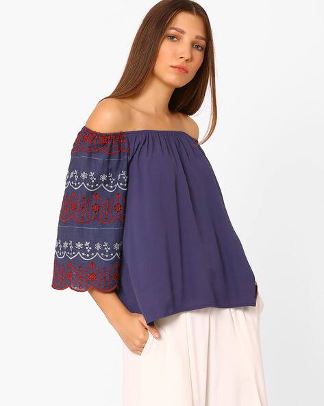Blue Life New Bohemian Clothes Show Off Shoulder Top Pretty