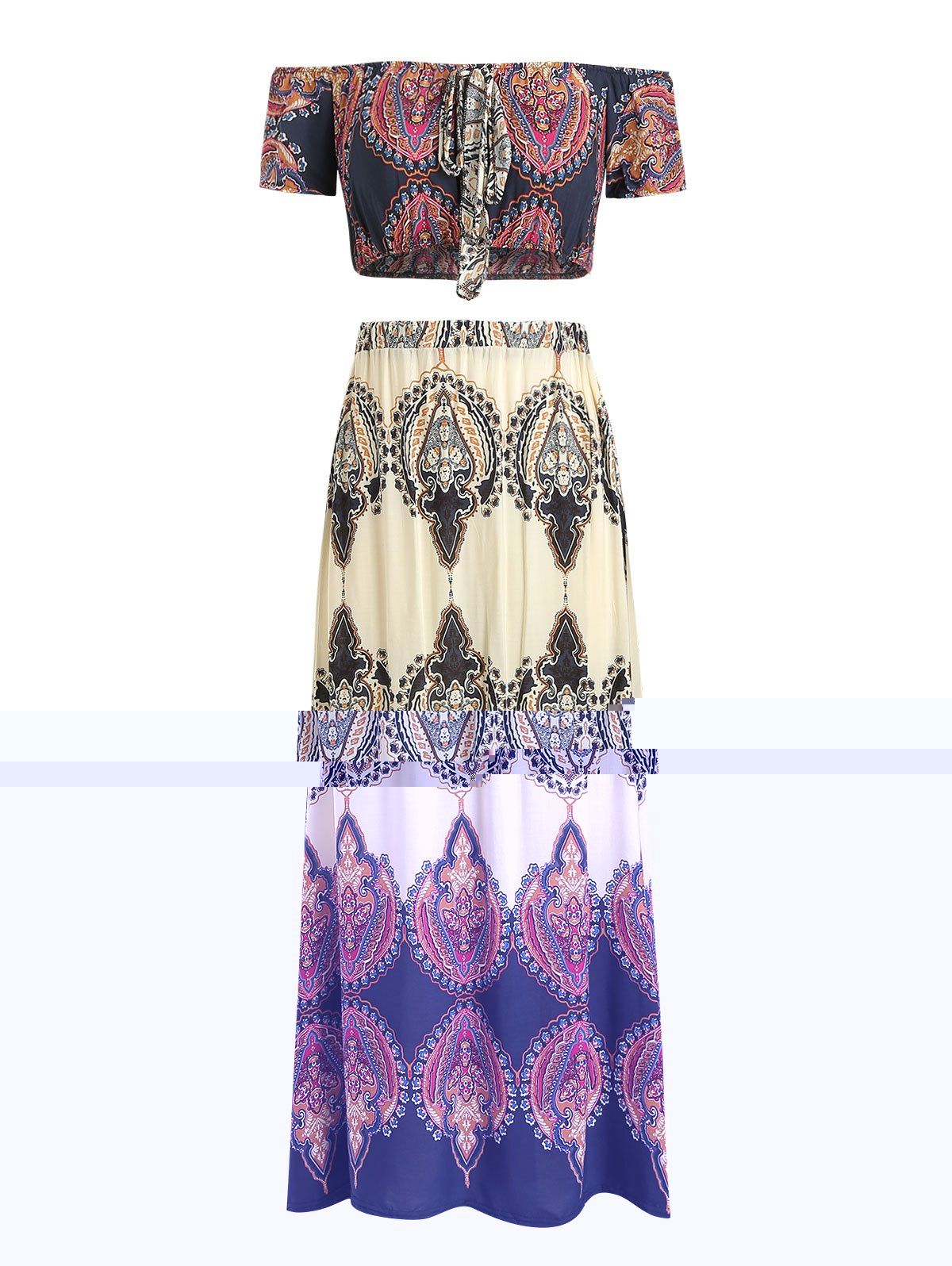 46 Off Bohemian Print Maxi Skirt And Off The Shoulder Crop Top