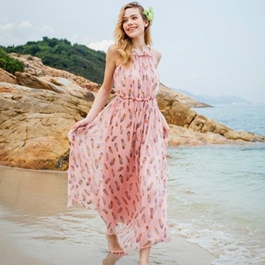 Bohemian Style Elegant Chiffon Long Sand Dress Pink Blue Id