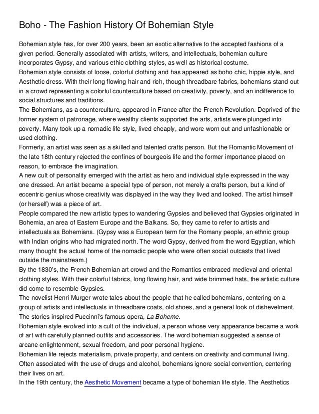 Elements Of Bohemian Culture That Influenced Current Styles Of
