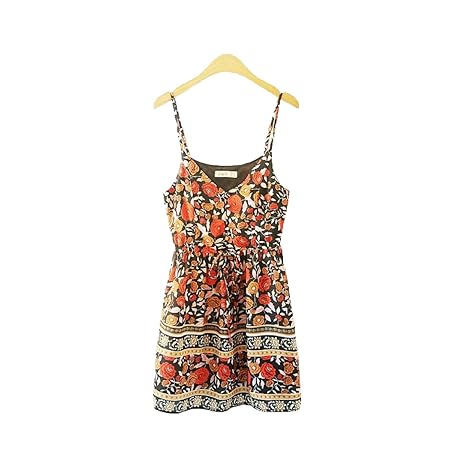 Flkj Dress Womens Floral Summer Print Sling Sexy V Collar Bohemian