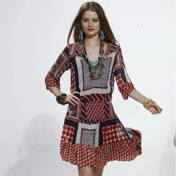 China Women Shift Dresses Bohemian V Neck Tie Printed From