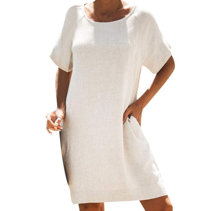 Amazon Com Women Cotton Linen Plain Simple Mini Dress Summer