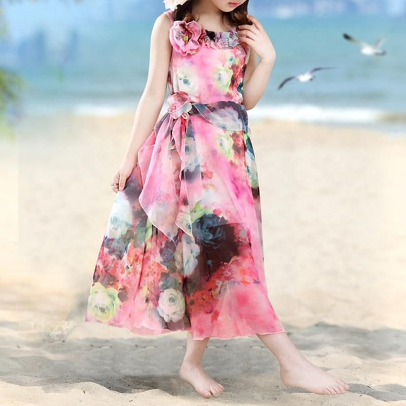 Bohemian Style Girls Kids Summer Beach Casual Dress For 3y 15y