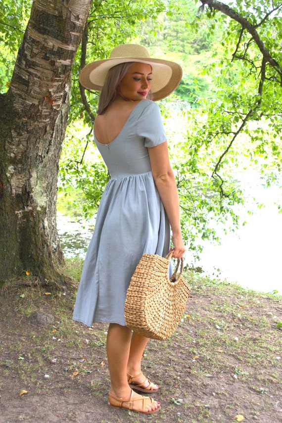 Linen Scoop Neck Dress Easy Boho Dress Simple Flattering Etsy