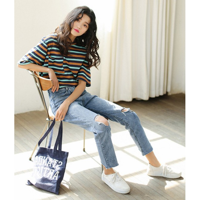 Korean Women S T Shirt Striped T Shirt Short Sleeve Top Student