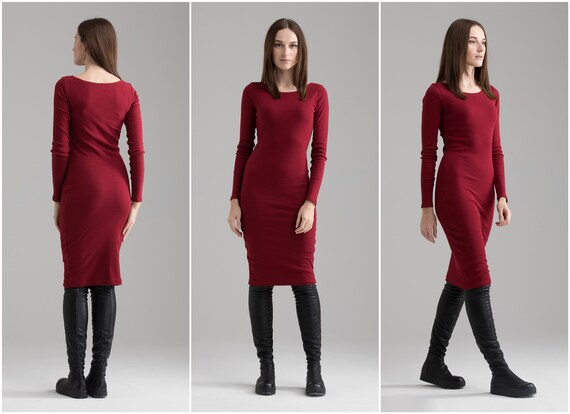 Tight Red Dress Casual Winter Dress Midi Dress Bodycon Dress Etsy
